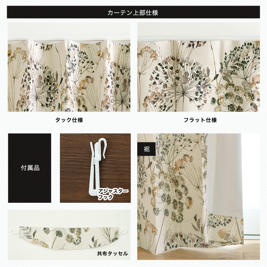 仕様 | タック:1.5倍ヒダ、2倍ヒダ、フラット/裾:8cmダブル |