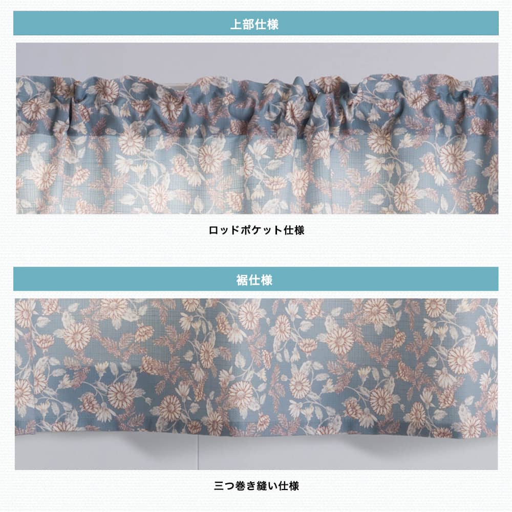 上部…ロッドポケット(袋縫い)仕上げ 下部…裾3つ巻き縫い |