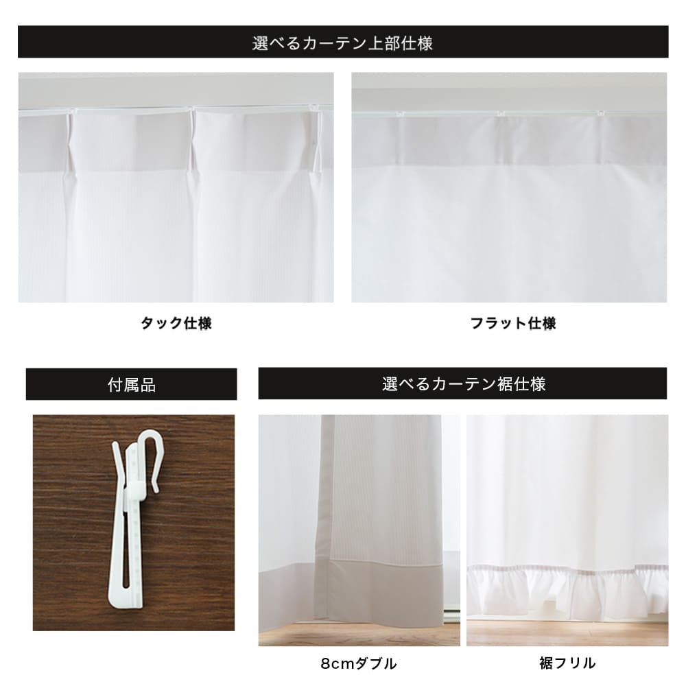 | 仕様 | タック:1.5倍ヒダ、2倍ヒダ、フラット/裾:8cmダブル 1.5倍ひだの裾フリル仕様もお選びいただけます。 |